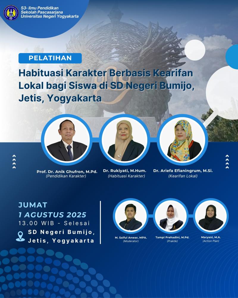 This activity was organized by the Doctoral Program in Educational Sciences, Postgraduate School of Yogyakarta State University, as a form of academic implementation in the field of character education.